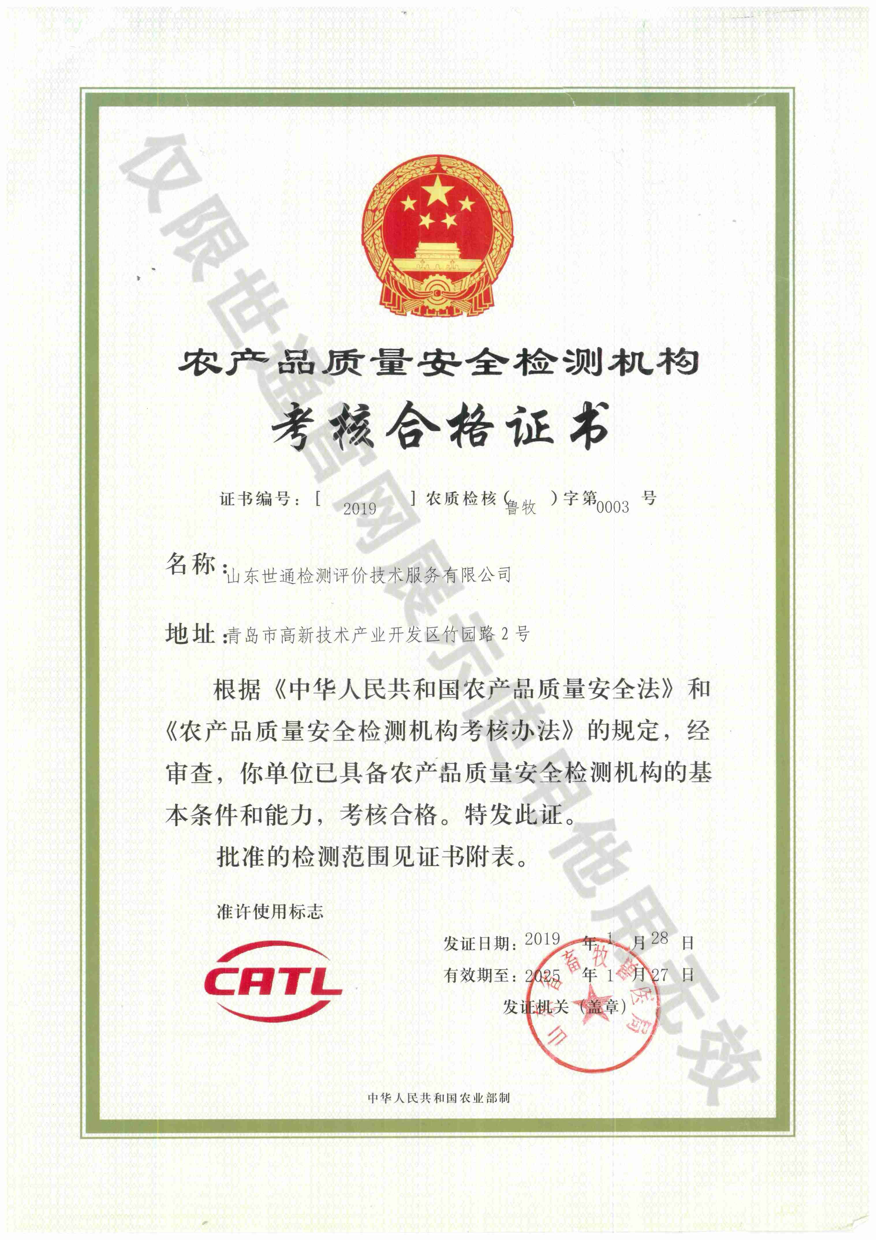 農產品質量安全檢測合格證書 | CNAS實驗室認可證書 | 中國合格評定國家認可委員會 認可決定書 | CMA資質認定書 |
