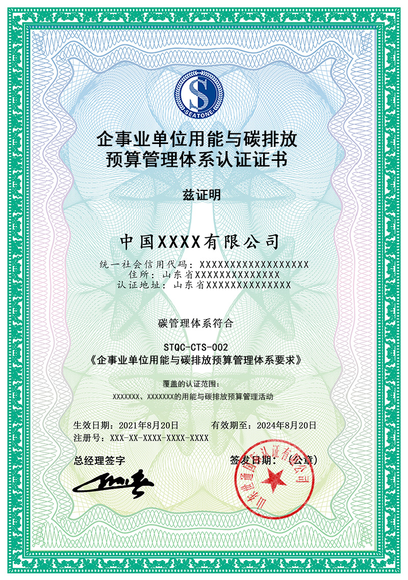 碳排放管理體系認證證書 溫室氣體核查聲明 用能與碳排放管理體系證書 產品碳標簽評價證書