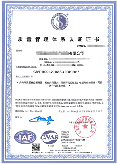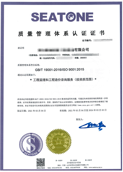 質量管理體系帶標證書樣板 質量管理體系不帶標證書樣板
