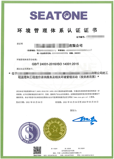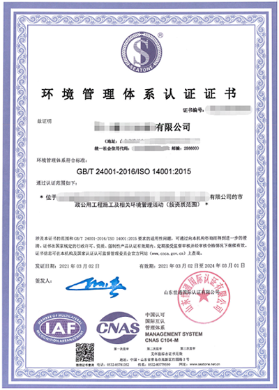 環境管理體系帶標證書樣板 環境管理體系不帶標證書樣板