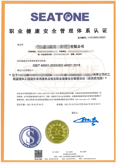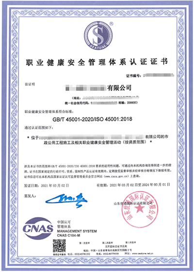 職業健康管理體系帶標證書樣板 職業健康管理體系不帶標證書樣板