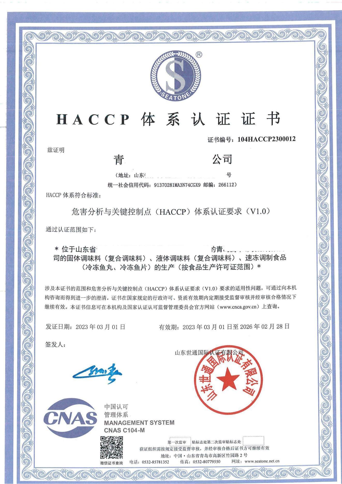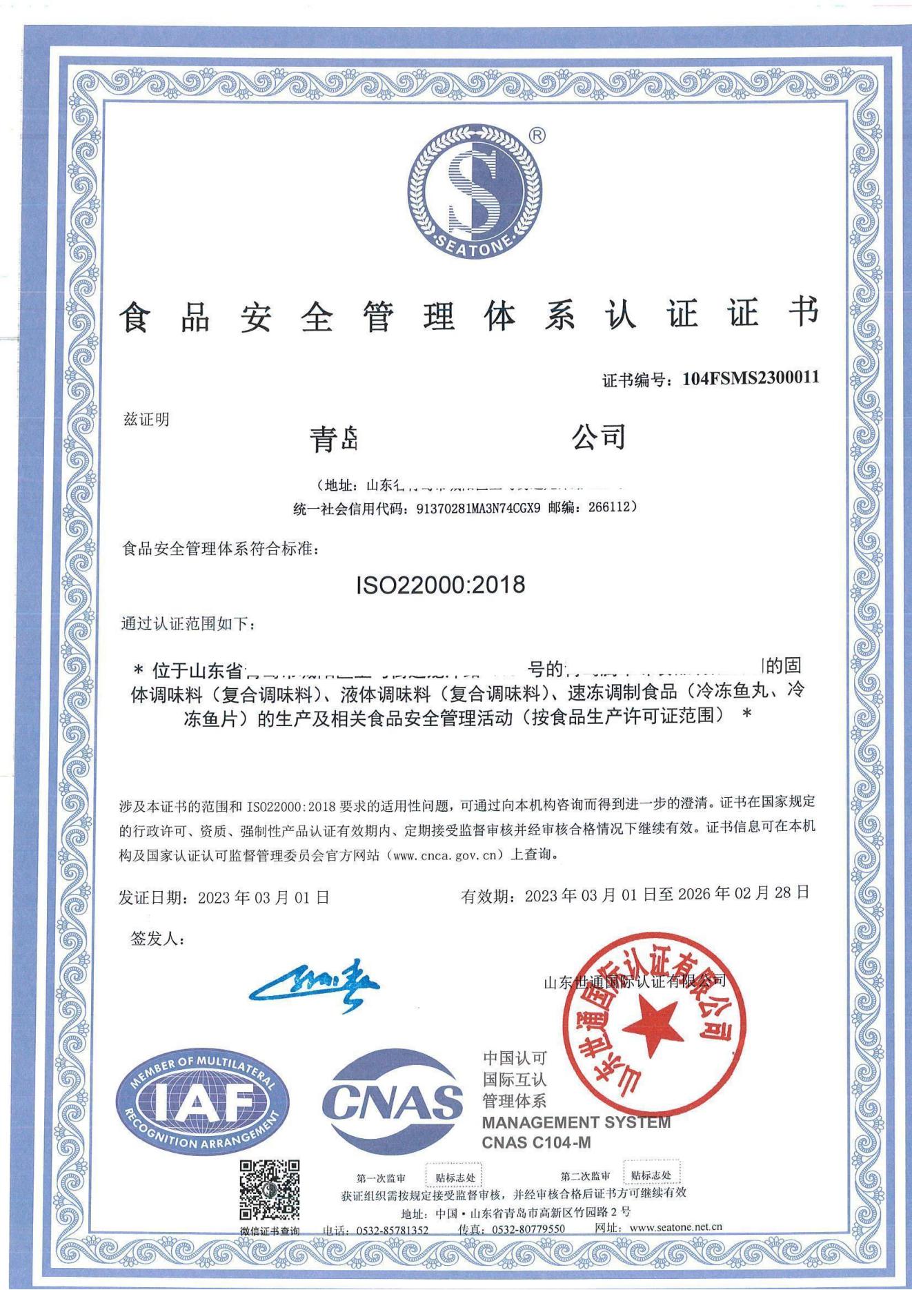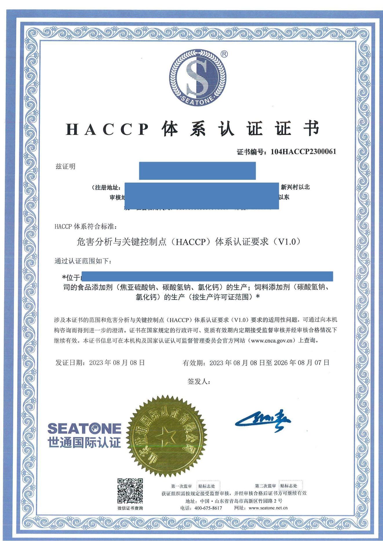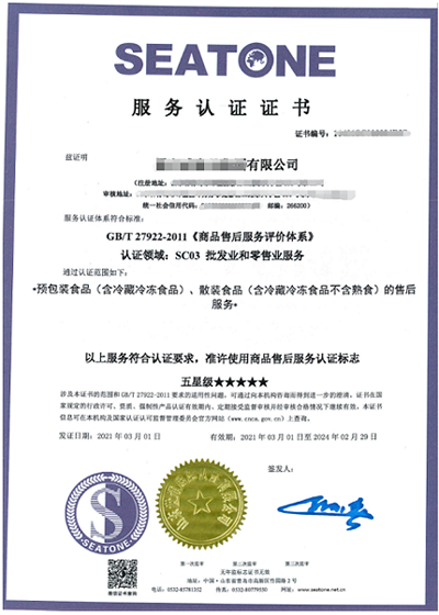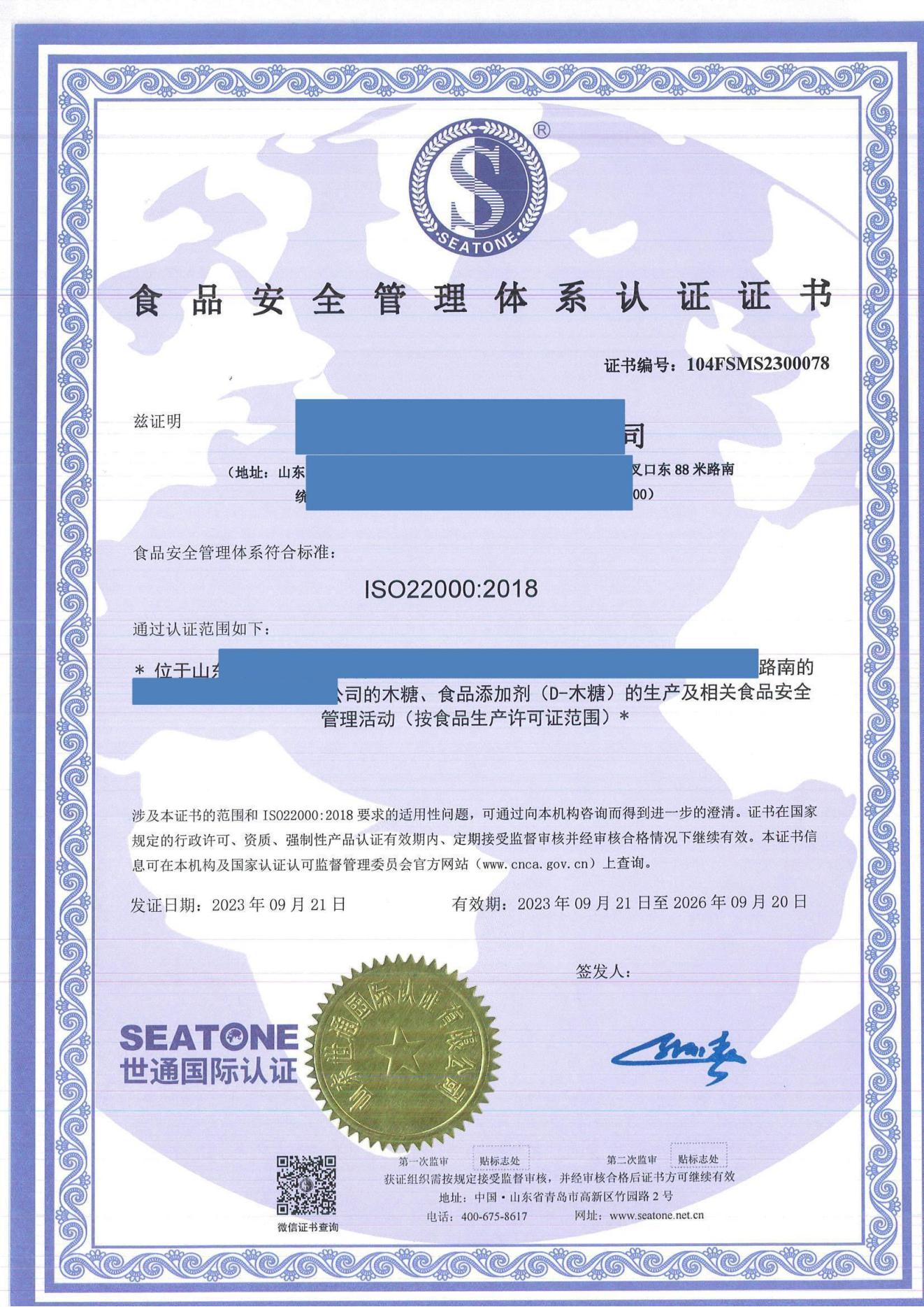 食品安全管理體系帶標證書樣板 食品安全管理體系不帶標證書樣板