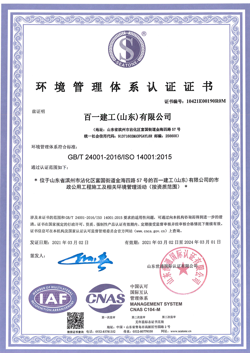 環(huán)境管理體系帶標(biāo)證書(shū)樣板