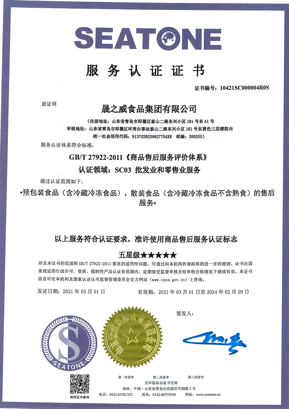 食品安全管理體系帶標(biāo)證書(shū)樣板
