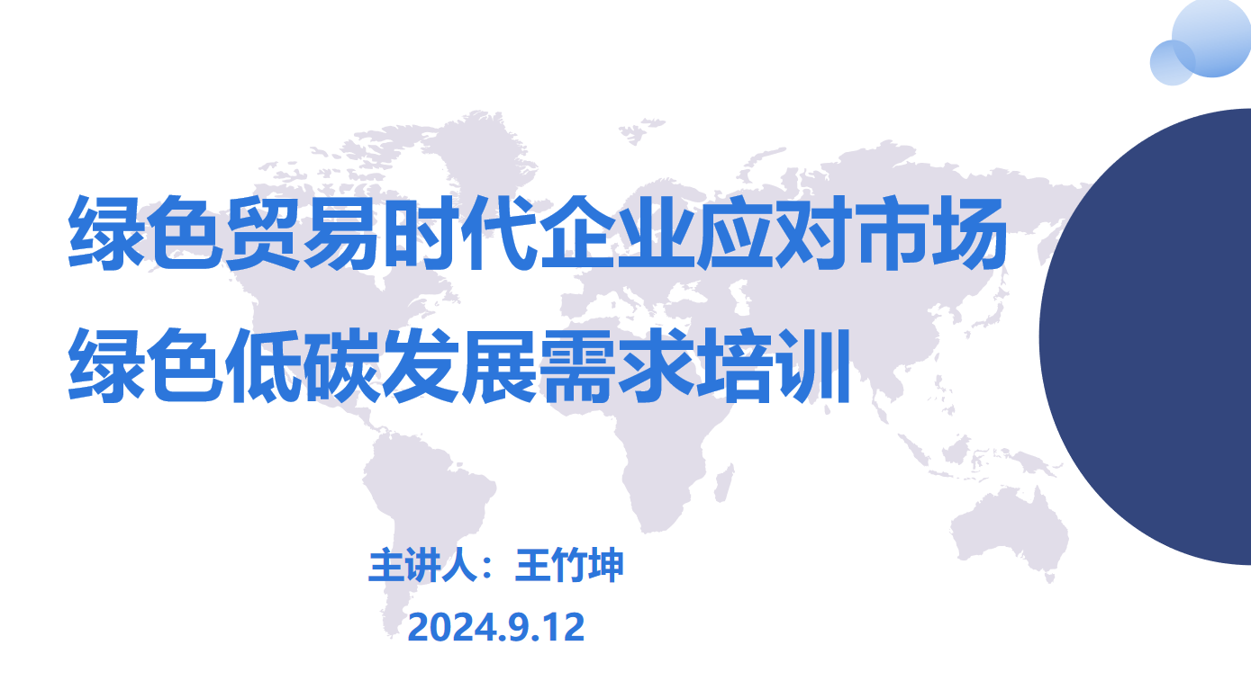培訓中,王竹坤帶來的主題為《綠色貿易時代企業應對市場綠色低碳發展需求培訓》。課程伊始,王竹坤以綠色低碳基礎知識為切入點,深入且系統地解讀了 ISO14064、ISO14067、ISO14068 等國際標準,為企業明晰了綠色低碳發展的方向和要求。接著,通過生動的實際案例,進一步深入分析溫室氣體核查、產品碳足跡認證及碳中和認證的核心要素及重大意義,讓企業深刻認識到綠色低碳認證在國際貿易中的關鍵作用。隨后,王竹坤緊密結合歐盟碳邊境調節機制對紡織服裝行業出口企業的影響,憑借詳實的數據進行深入分析,為相關行業企業提供了極具針對性的節能減排路徑與建議。這不僅為企業應對歐盟新政策提供了有力的指導,也為企業在國際市場中保持競爭力提供了切實可行的方案。最后,王竹坤依據山東省綠色制造相關政策,從綠色制造創建的難點痛點、申報流程、申報要求等方面進行了深入淺出的講解。他以豐富的經驗和專業的知識,為企業在綠色制造領域的發展提供了寶貴的建議和指導,受到了與會企業代表的一致高度認可。
