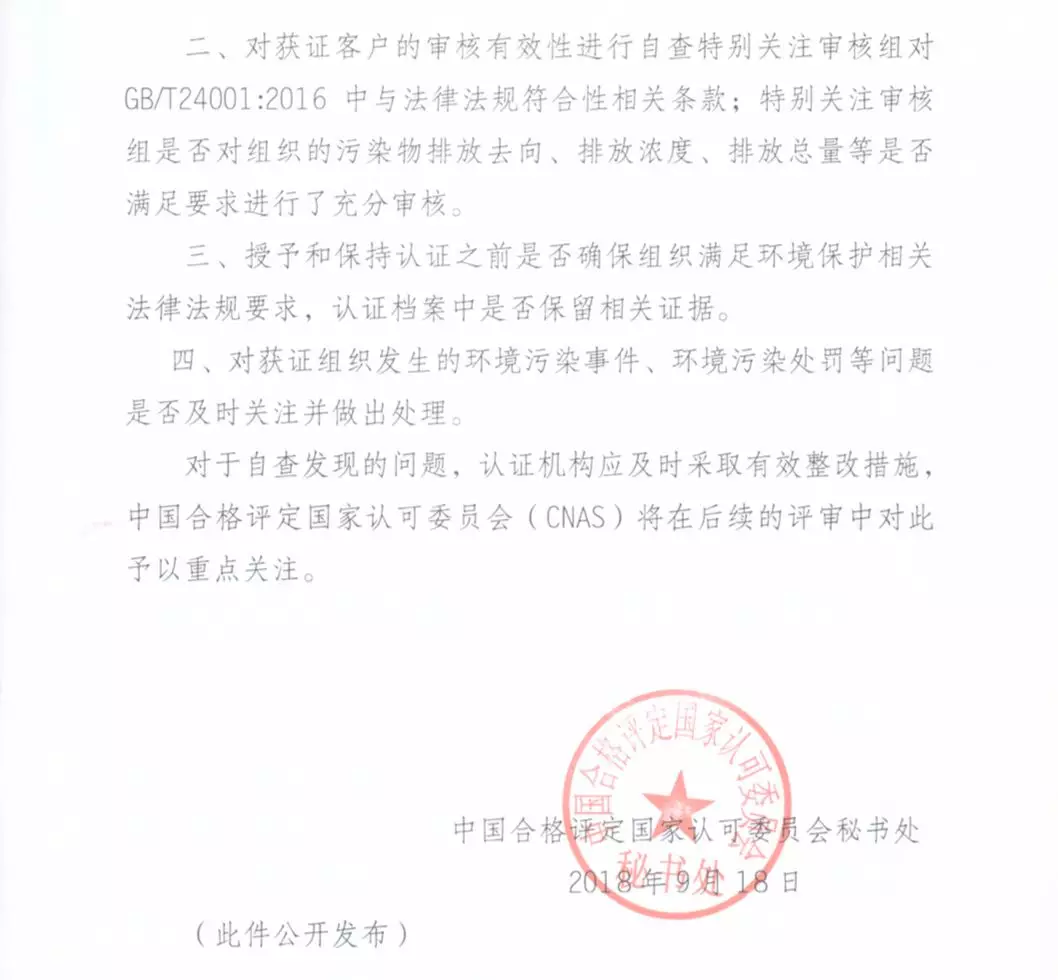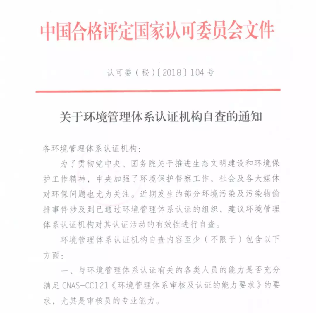 近日,CNAS發布關于環境管理體系認證機構自查的通知。