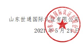 山東世通國際認(rèn)證有限公司 2021年5月21日