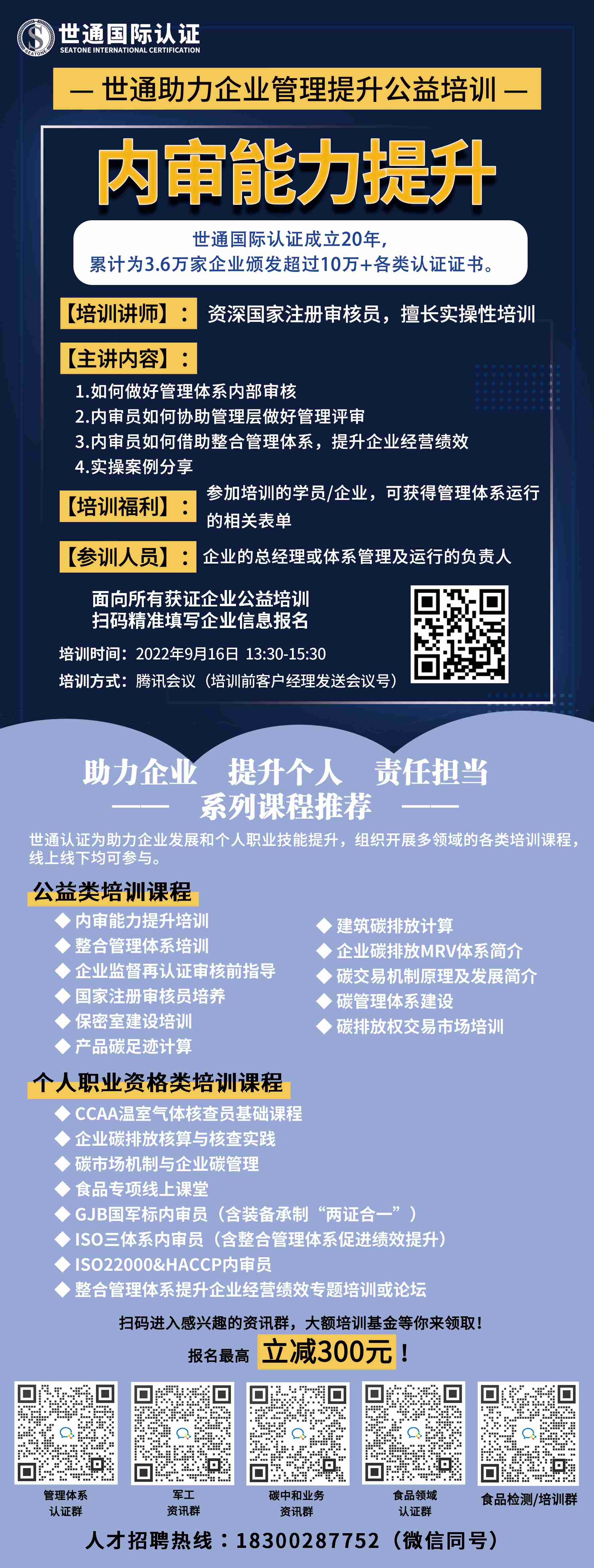 下一篇:【公益培訓(xùn)】世通助力企業(yè)管理提升—《監(jiān)督、再認(rèn)證企業(yè)審核前指導(dǎo)》公益課堂