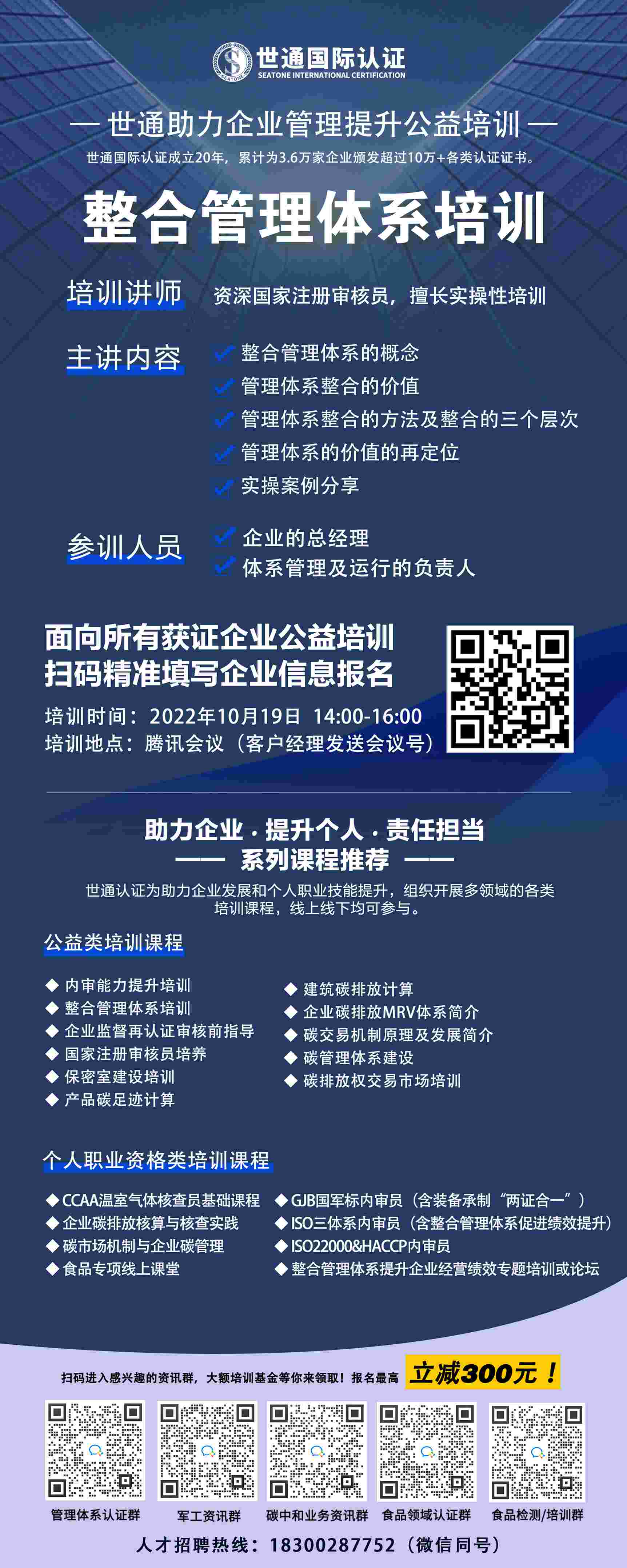 上一篇:【公益培訓(xùn)】世通助力企業(yè)管理提升—《監(jiān)督、再認證企業(yè)審核前指導(dǎo)》公益課堂